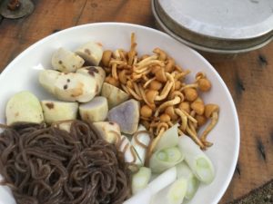 外遊び屋は簡単に、めんつゆと味噌で出汁を作りました。東北の風習という事で、味噌は欠かせないだろうという思い込みと、
