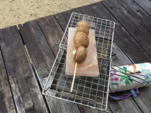 転がりやすいので、串に刺すと焼きやすいです。