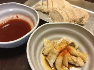 お店で人気の蒸し鶏を手早く作るっていいですよ。