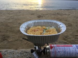 この飯盒の良いところは・・・鍋にもなるってところですね。外遊び屋はこの飯盒はほぼ、パスタ湯がき用と化してました。