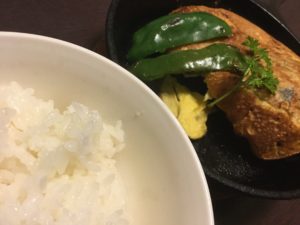 お米が進むピカタの完成です。