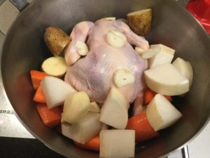 丸鶏とお好みの野菜を投入!