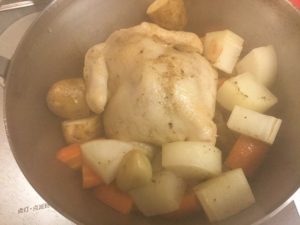 では、ここで一品。ローストチキンを作ってみます。