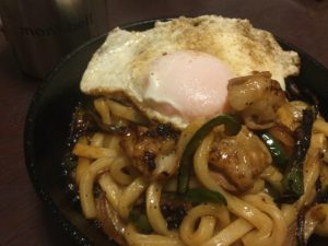 そして、うどんと焼肉のタレを入れて混ぜ・・・