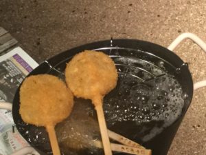 串カツに今の時期ならカキフライ、アスパラなんかもいいんですよね。