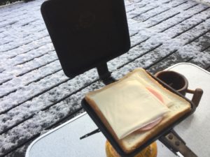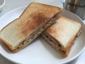 寒い中で熱いチーズが伸びるホットサンドはまた格別でした。