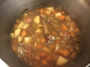 そこでアクを取り除いたら蓋をして15分煮ます。