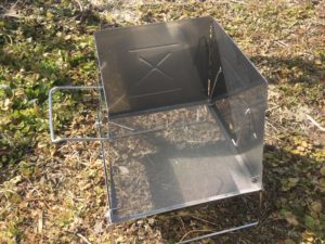 ユニフレームのファイアスタンドのように下面は網でサイドにウォール作って煙突効果を作って