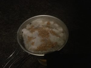 粉々に砕いたチキンラーメンを入れて