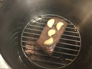 網を引いたら、ニンニクをちょっと載せます。