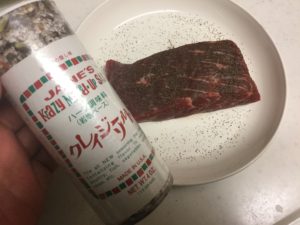 常温に戻して塩コショウで一時間ほどなじませます。