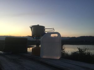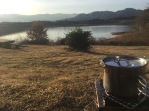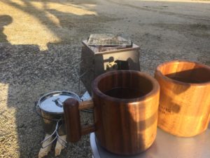 キャンプの朝に飲むコーヒーは最高です。