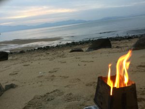 今回は暑くても我慢できるくらいの火で出来る焚火台を