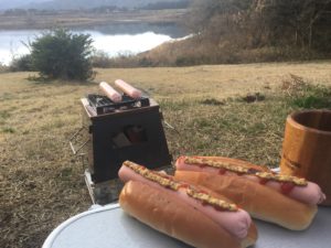 炭火で焼くホットドッグ!