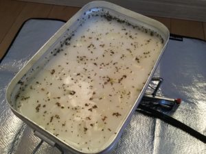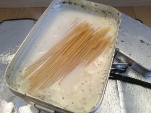 1 メスティンで水を捨てないパスタの場合
