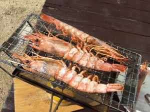 むろん炭火が一番おいしいですけれども、網で焼くと無用な油などが出て食材を浸すことが無いので純粋に美味しいんですね。