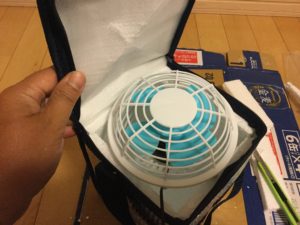 ソフトクーラーにDaisoさんで売っているサーキュレーター!