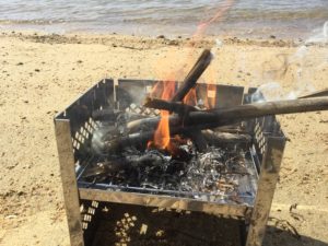 小さい焚火には方向性がでる焚火台が便利ですね。