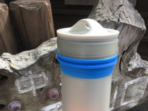ボトル型でタンブラーのようになるので、使用前に綺麗にふき取れば飲めない水が混入しにくいんですね。