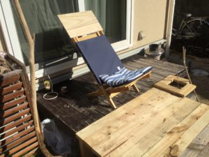 このデッキでベランダキャンプ。タープ泊をする日も