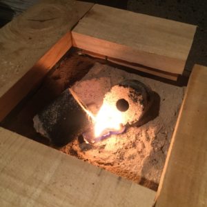 今回は良い砂が無かったのですぐに灰を入れます。