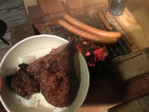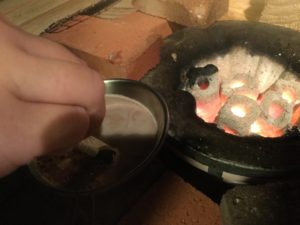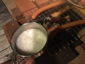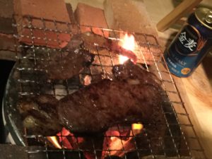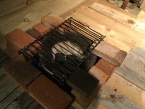 そして強火の遠火を作るためにレンガでかさ上げ。