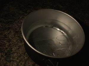 水道が凍った場合に備えていたクッカー内の水も