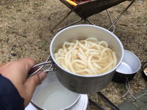 キャンプ羽釜で釜揚げうどん!