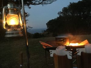 ランタンに火を入れ焚火を熾しコーヒーの準備。