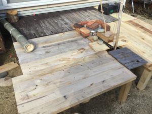 根かは庭キャンプの為にちょっとずつ作ったパッチワークデッキと