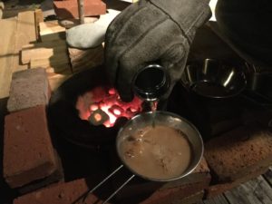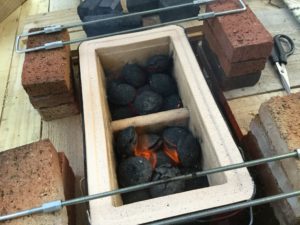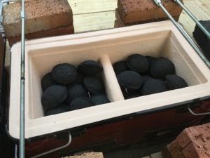 豆炭の上にオガ炭を置く簡単スタイルで行きます。