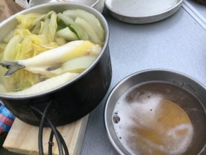 調理開始!って言ってもカット野菜にフグですからね(^^