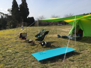 山間部で雨の懸念があったのでタープ張ってみました。