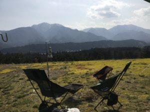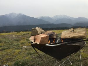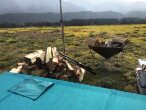 地べたにシートそして焚火というスタイルです。