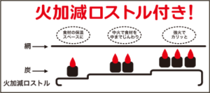 つまりロストルで強火を作っておけばその炭の置く位置で弱火強火が使い別けれます。