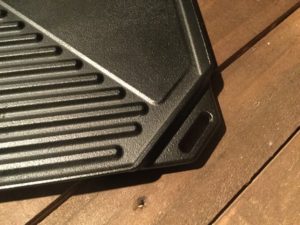 また・・・縁には壁になる立ち上がりがあるので油や肉汁がバーナーへ垂れ流しになることはありません。周りが汚れないのもありがたいところです(^^