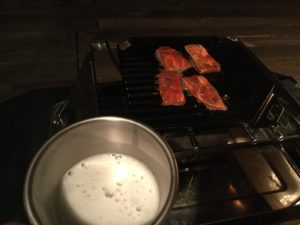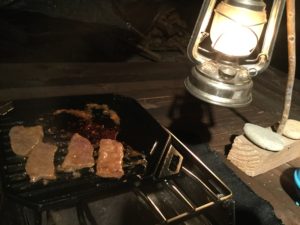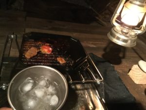 泡盛を飲みながらおつまみの為のお肉を焼きます。