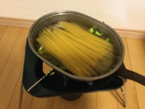 炊事棟が遠いときなどに水切り不要の湯がき方は便利です。