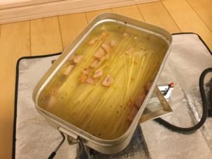 メスキット!そして・・・鉄フライパンでもできます。