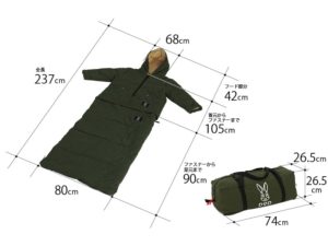 そんなかさ張るアイテムのうちジャケットと寝袋を一つにしてしまおうというのがDODより発売中のジャケシェラ2!