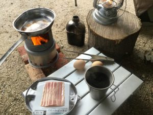 2.キャンプらしい焚火!こだわりクッカーで朝食!
