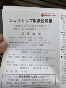 Twitterのぁ野遊び銅製品の専門店「コパドア」よーこ店長の銅のシェラカップの懸賞があたりました!