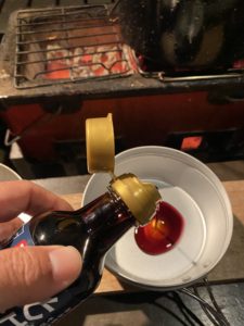 ただキャンプで麺類を作ると、麺を湯がいた汁、出汁を準備。