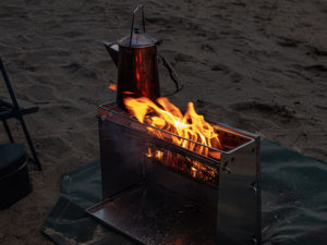 ただの二次燃焼の焚火台だけではなく、冬の寒い時に特化した焚火台です。