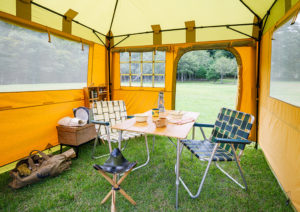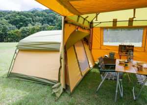 別売パーツをつければ、土間ではなくせます。これ自体でテントとしての機能も持たせられます。