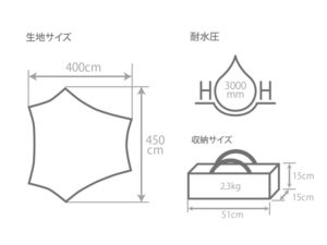 日陰を得るために外側を広くするも良し!またタープの立て方によってはサイドを垂らすことで雨や、日差しをカットすることが出来ます。