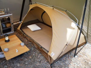 テンマクデザインのインナーテント!正面がメッシュにできるので比較的涼しいかな。