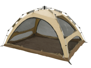 スタンダードな形状で色もタンなので調和しやすいテントです。