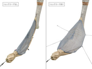 蚊帳付きなのですが、パラシュート生地に直で寝ていると生地が薄いのでハンモックに接している部分は外からでも刺されるんです。