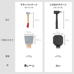またハンマーの中には細かい鉄球が入っているので、打ち込んだ時の衝撃を吸収してくれるそうです。